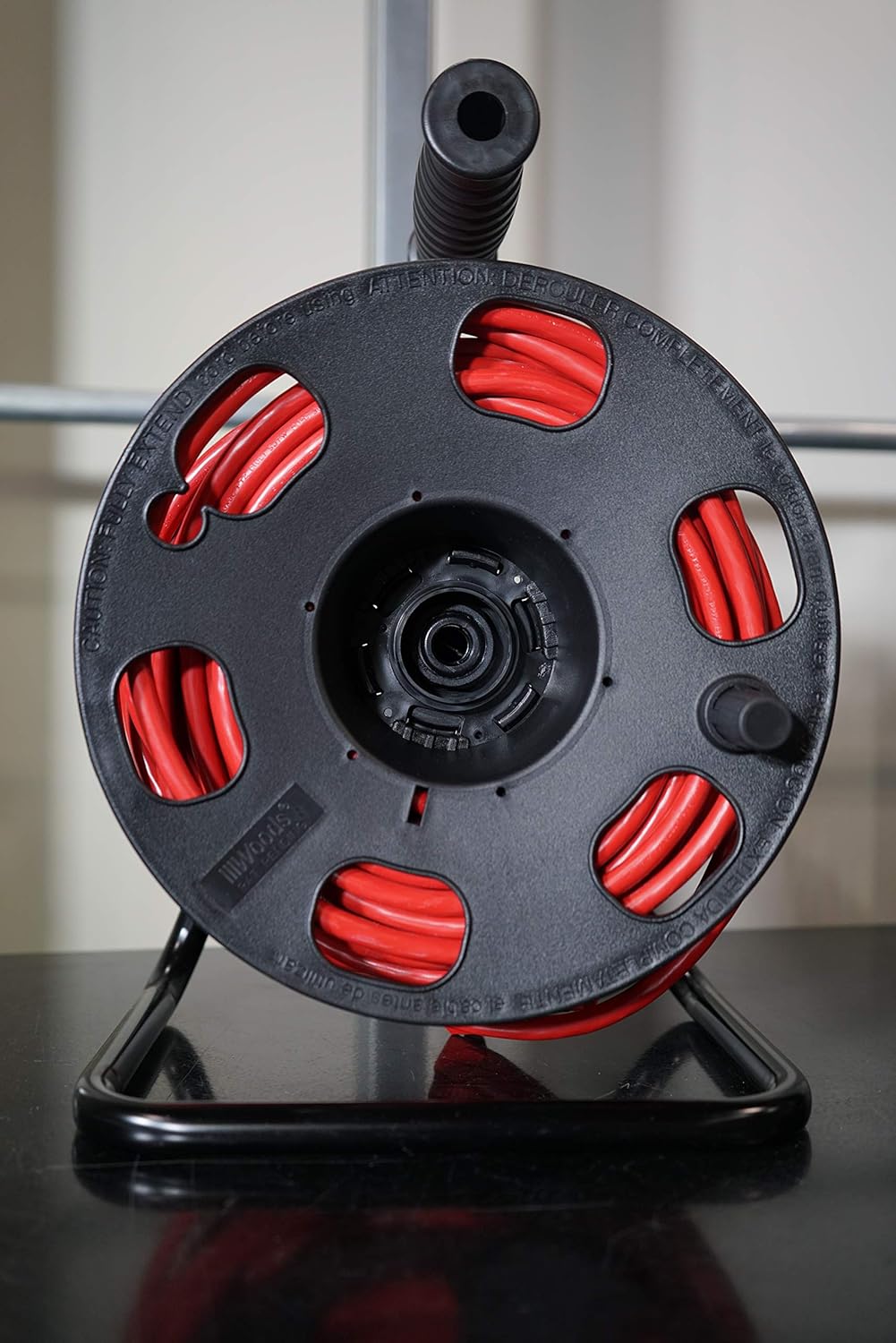 Don’t let tangled cords slow you down. Invest in the Woods Heavy Duty Metal Extension Cord Reel Stand today and experience the convenience of a clutter-free workspace.